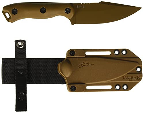 Details: Ka-Bar is proud to be the manufacturer of Becker Knife & Tool products. The Ka-Bar BK18 Becker Harpoon, approved by Ethan Becker himself, features a 4.562" drop point fixed blade with a brown finish and is made of 1095 Cro-Van steel. The full length tang is dressed with brown Ultramid handles for durability and use in adverse conditions. The 0.165" spine is grooved for extra leverage when cutting. The Celcon sheath keeps your Becker Harpoon readily at hand while camping, hiking, or hunting.
