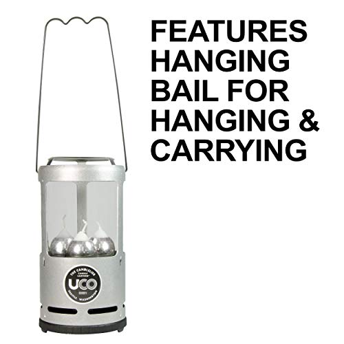 Détails : La lanterne à bougie UCO Candlelier reprend la chaleur, la facilité d'utilisation, la sécurité et la commodité de la lanterne à bougie UCO Original et augmente la luminosité. Trois bougies UCO de 9 heures rendent le Candlelier parfait pour les grands groupes de campeurs et un excellent choix pour une utilisation domestique et d'urgence. Le Candlelier utilise bon nombre des mêmes caractéristiques éprouvées que la lanterne à bougie originale : tubes de bougie à ressort, base à verrouillage rotatif, corps en aluminium et cheminée en verre. Le Candlelier génère suffisamment de lumière pour un pique-nique en famille et suffisamment de chaleur pour chauffer de petites quantités d'eau ou de nourriture - placez simplement votre marmite sur l'écran thermique. Dans un espace clos comme une tente, une grotte de neige ou une petite pièce, la chaleur que le Candlelier peut générer est remarquable. Pour les voyages de camping en famille, le camping en canoë et en kayak, l'utilisation à la maison ou en chalet - ou pour éclairer le chemin en cas de panne de courant - Candlelier est inégalé en fournissant une lumière et une chaleur attrayantes et peu coûteuses. Fabriqué aux Etats-Unis.