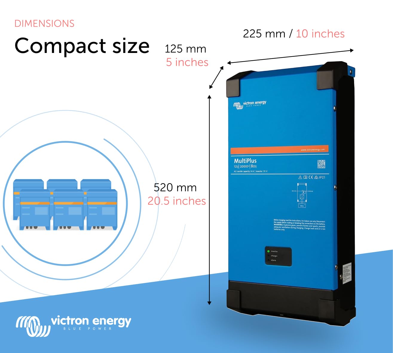 - Victron Energy Multiplus is a powerfull 12-Volt 2000VA 80-50 amp 120V true sine wave inverter and a sophisticated battery charger with adaptive charge technology
