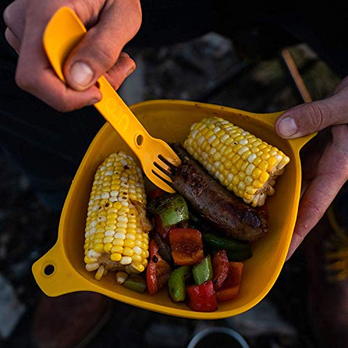 - 3-In-1 Spork: The ultimate piece of camping cutlery, the spork features a spoon on one end and a fork with a serrated knife edge on the other; Made from durable reinforced glass nylon
